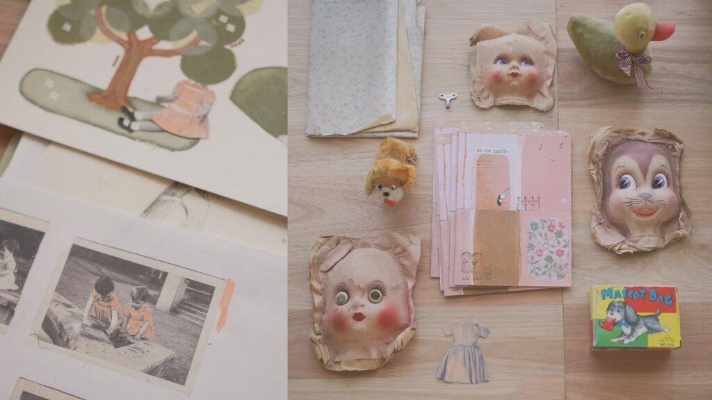 Reconstrucción de un momento en fotografías, reminiscencias de infancias pasadas y un texto de Poldy Bird.
