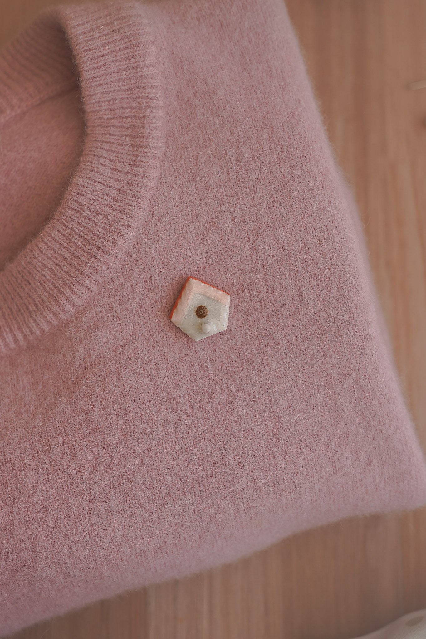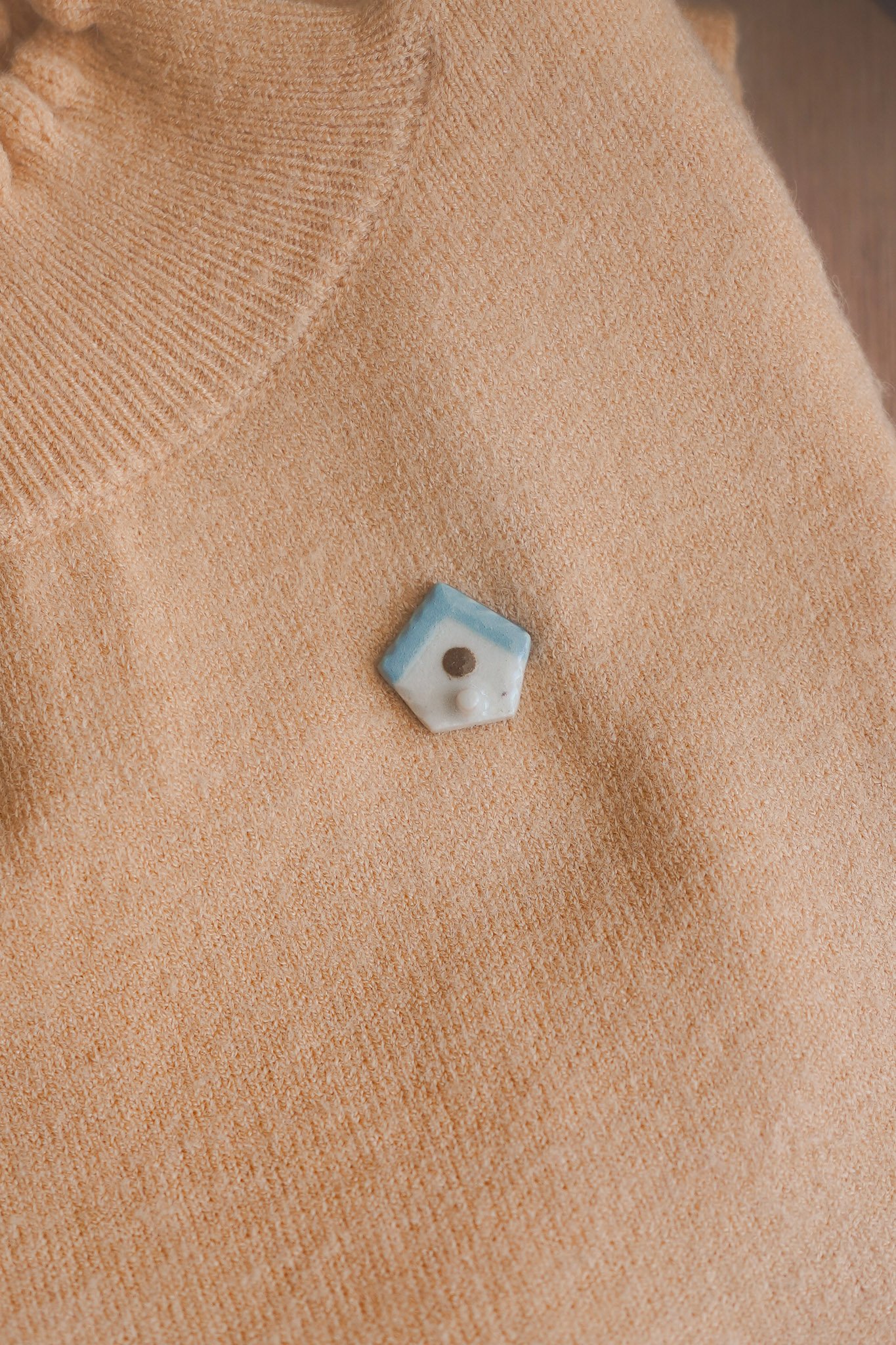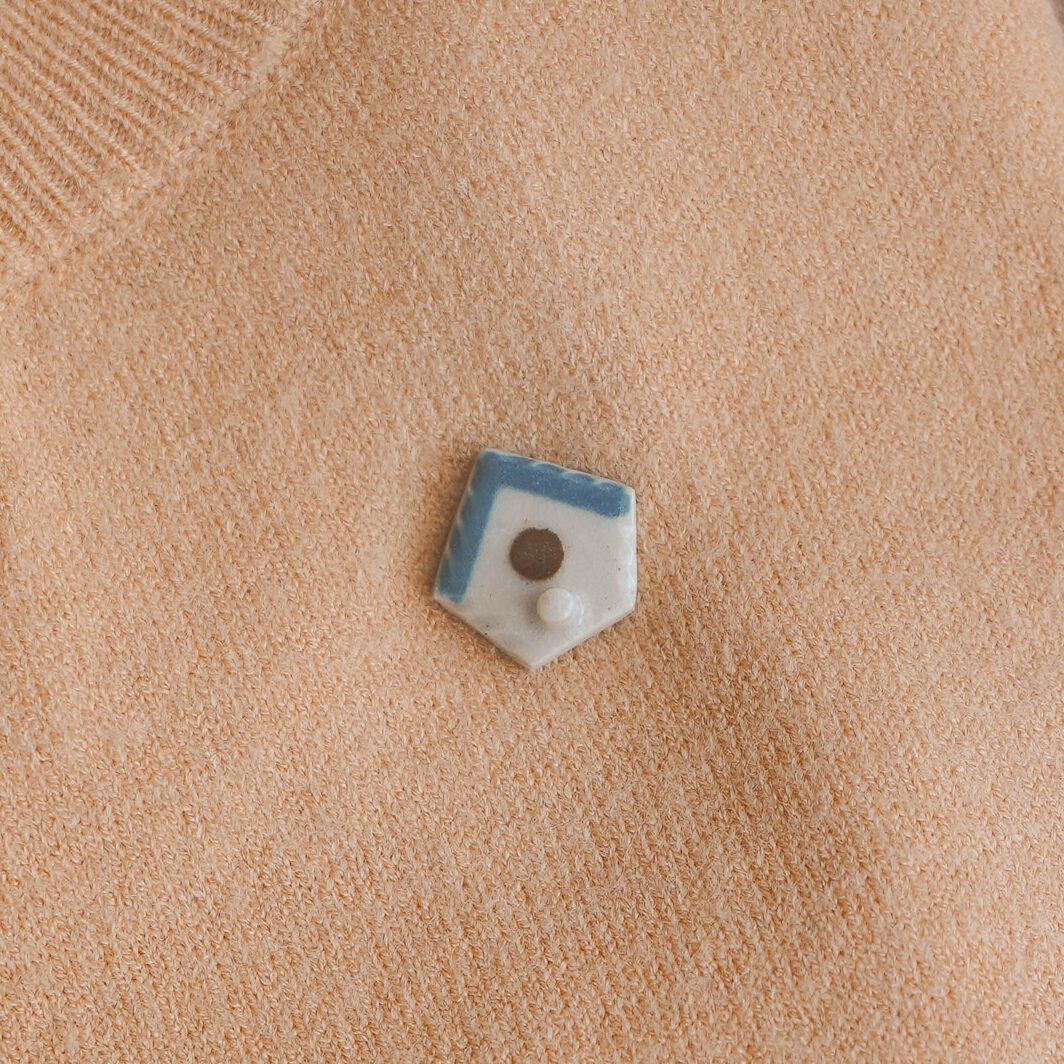 Pequeño broche con forma de casa de pajaro.