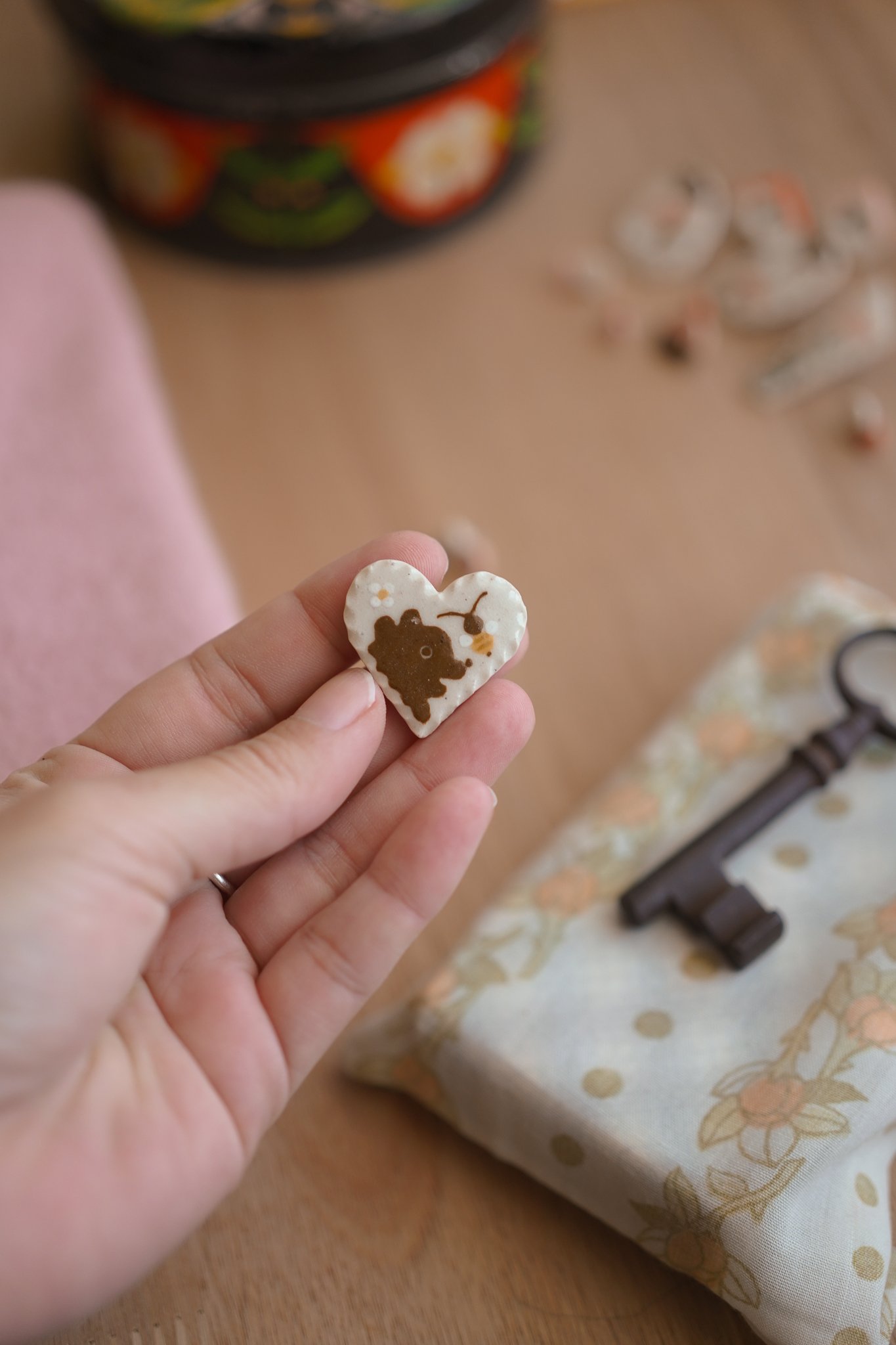 corazón oso y abeja / broche
