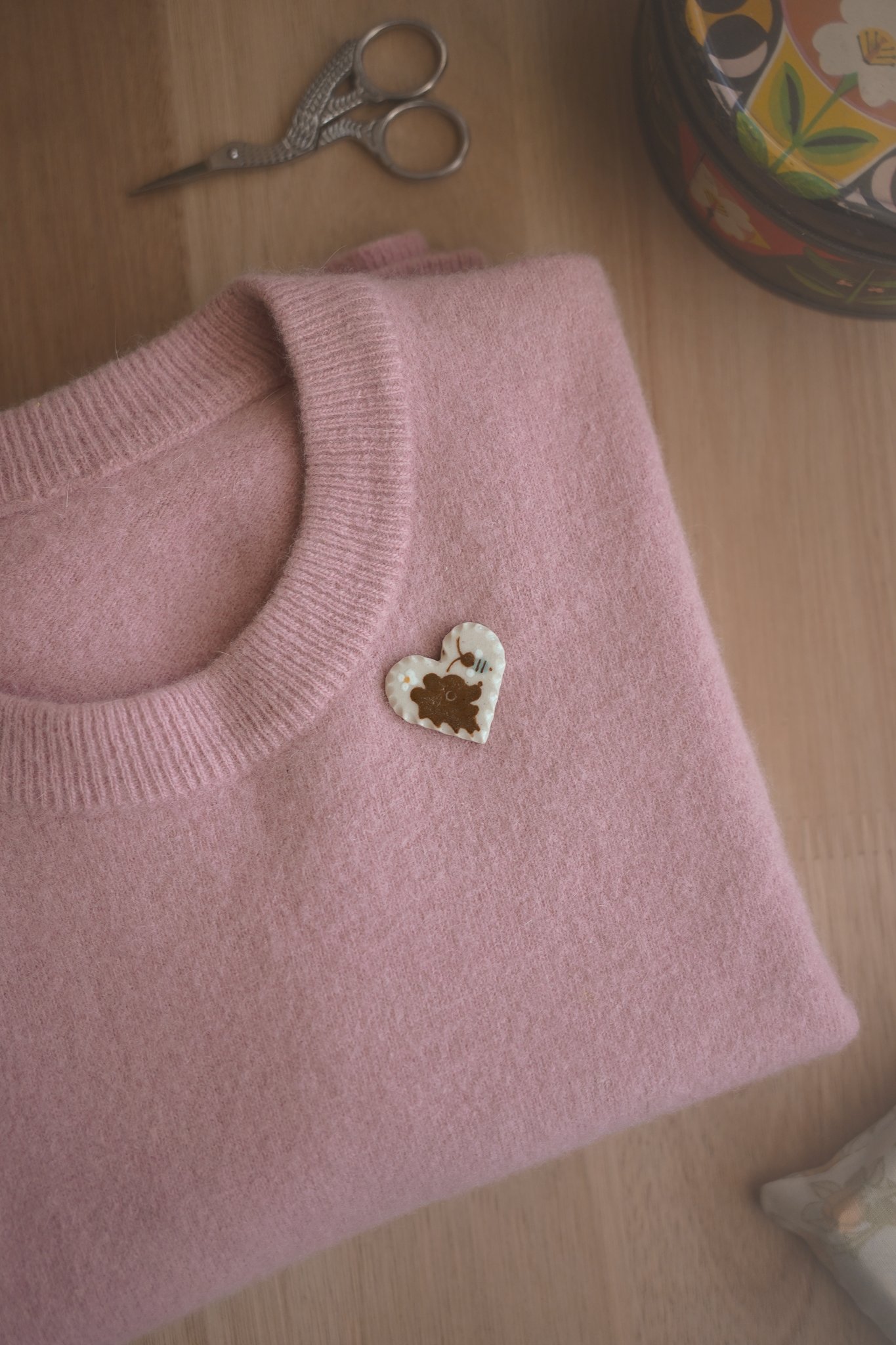 corazón pájaro y rosa / broche