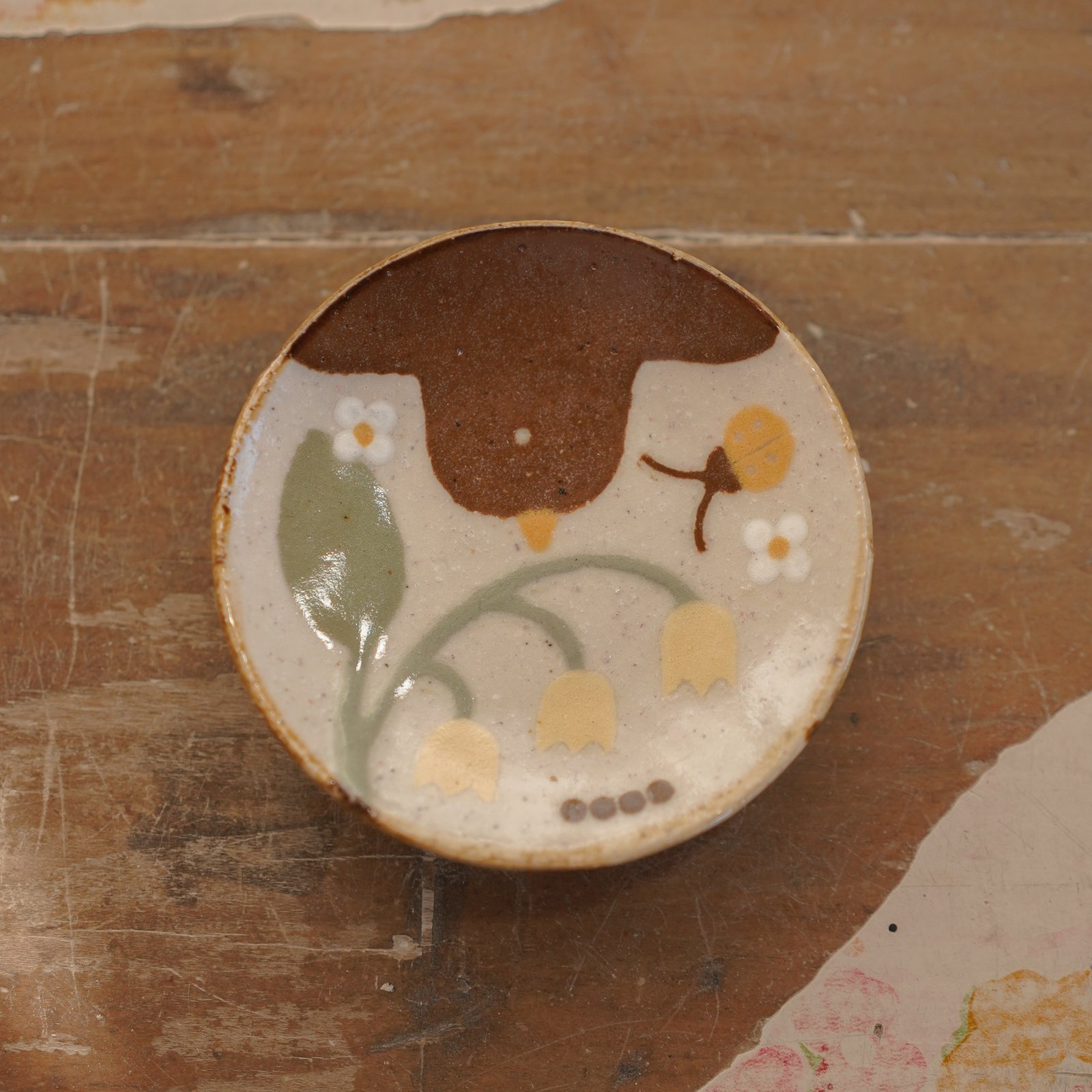 Plato con ilustraciones hecha en gres de 1230°. Hecho en torno alfarero, pintado a mano y esmaltado.